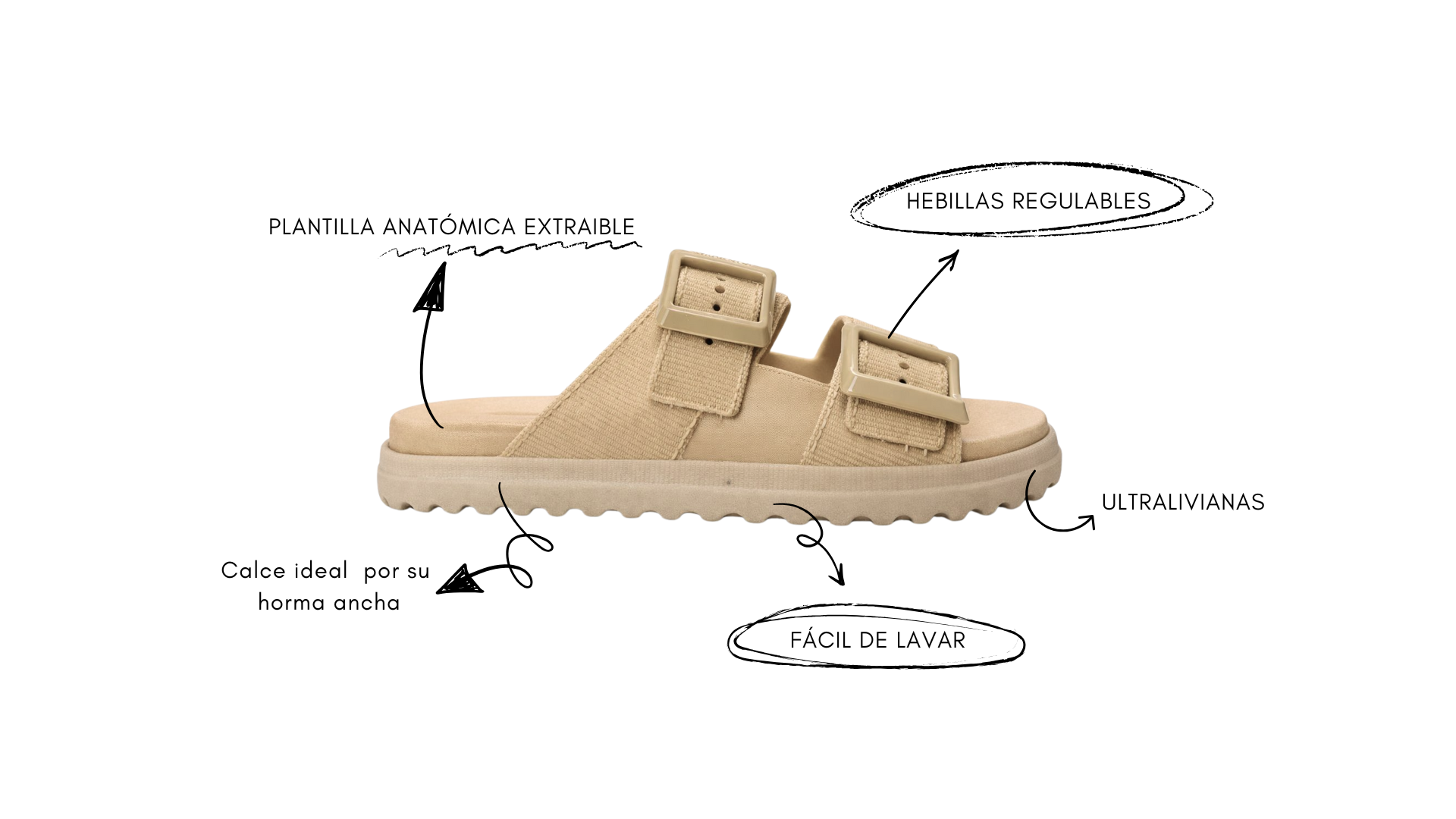 Capellada y base de PVC microexpandido/reciclable: Este material no solo es ligero, sino también respetuoso con el medio ambiente. Su diseño permite una gran flexibilidad y adaptabilidad al pie.